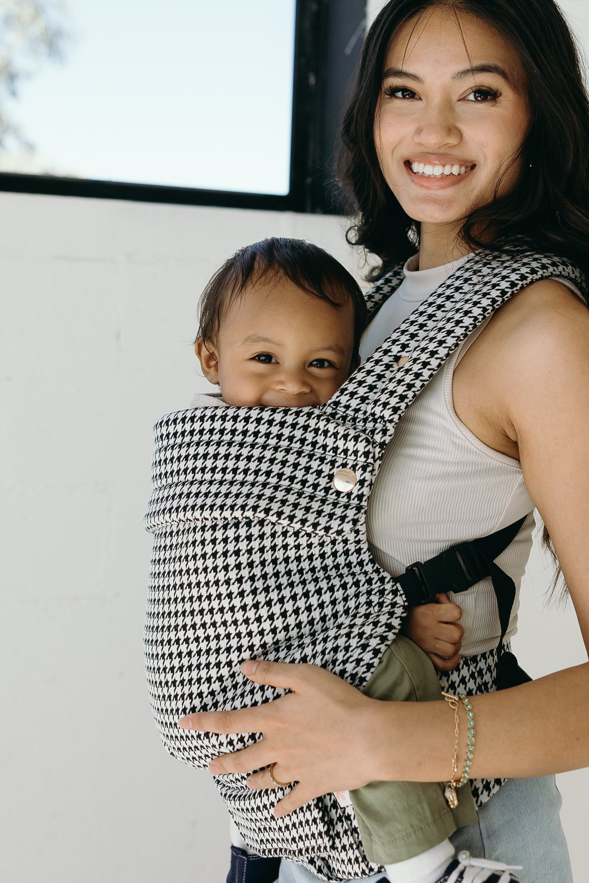 Meet Coco Houndstooth: a soft, stylish baby carrier designed for year-round comfort and confidence.